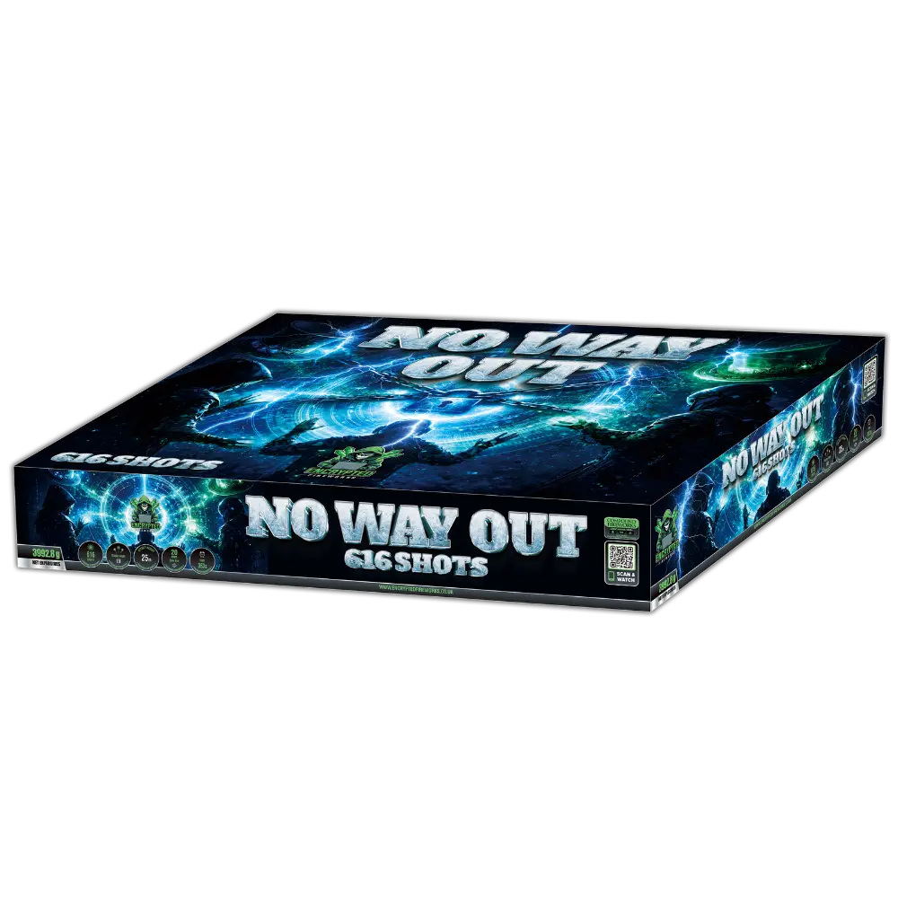 Safety is fundamental to our product development. No Way Out is classified as 1.3G and is intended for outdoor use only in large open areas suitable for F3 fireworks. Always follow UK fireworks safety guidance before use.